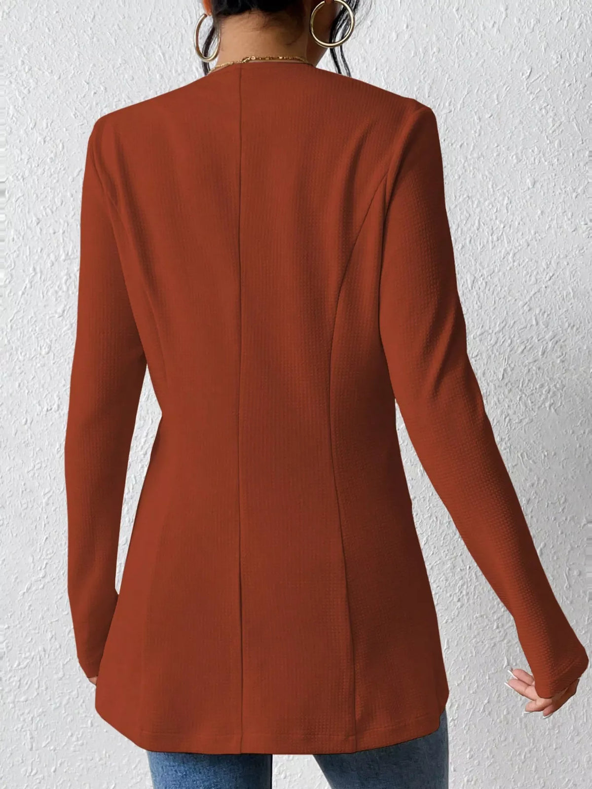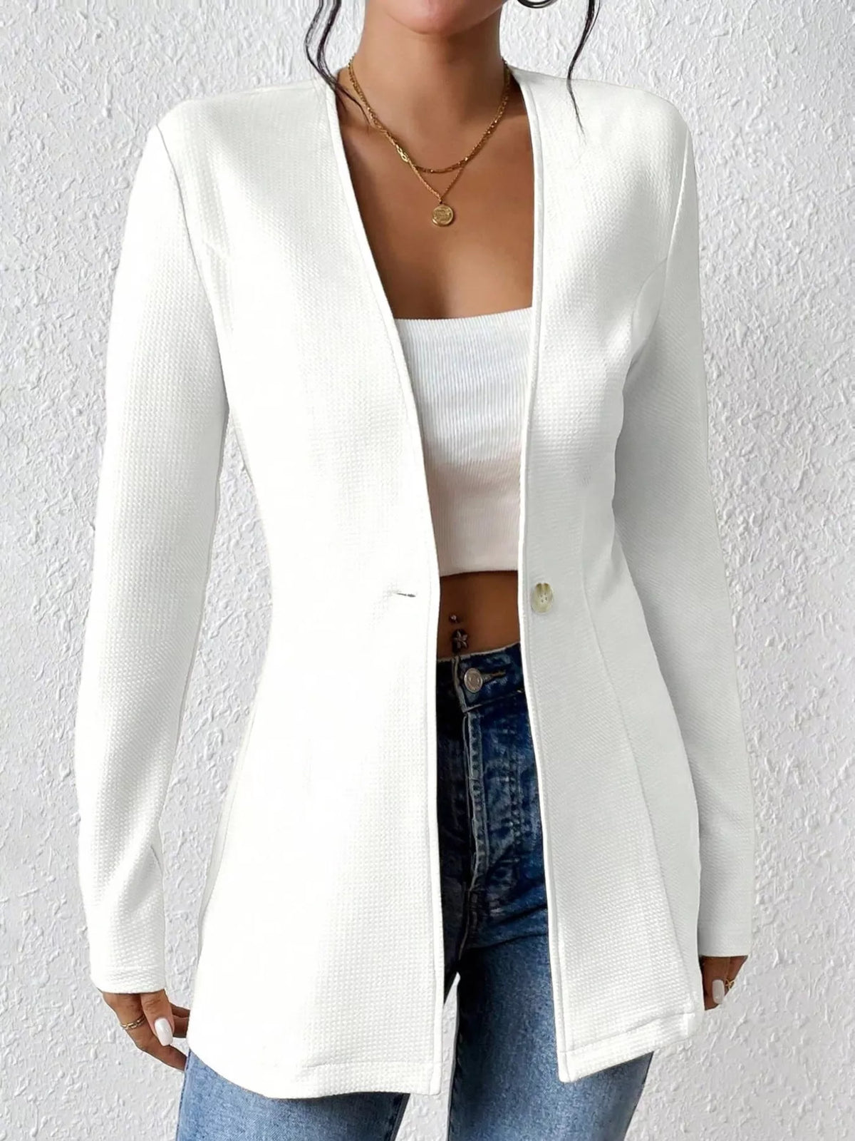 This versatile blazer transitions effortlessly between formal and casual looks. Pair it with tailored trousers for a professional edge, or match it with denim for a chic, smart-casual vibe. The One Button Long Sleeve Blazer is your go-to piece for effortless sophistication.