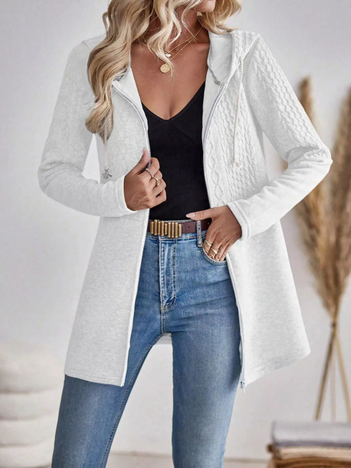 Drawstring Textured Zip Up Drawstring Hooded Jacket