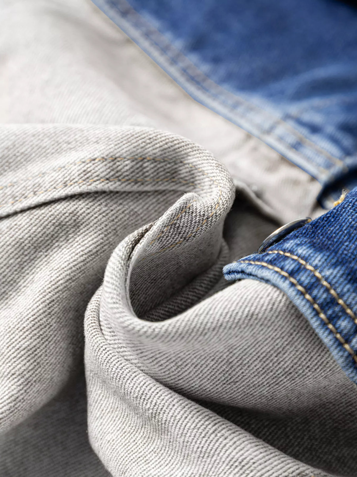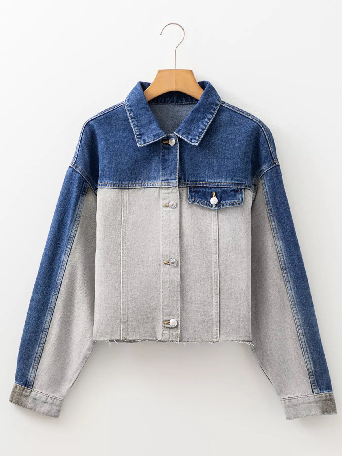Color Block Patchwork Raw Hem Denim Jacket - Light Gray / S
